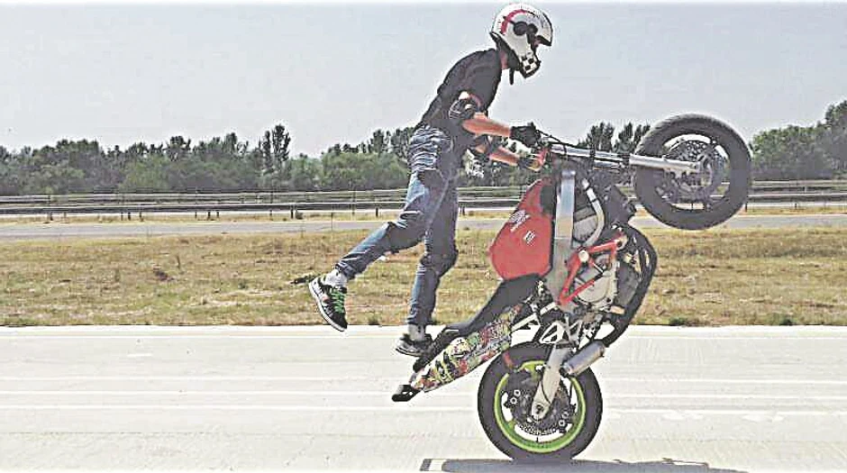 Vožnja na prednjem točku motora, balansiranje na rukama na rezervoaru pri punoj brzini ili vožnja na zadnjem točku stojeći na jednoj nozi samo su deo egzibicija koje svakodnevno izvodi Nikola Radojković (23) iz Aleksinca, jedini "stant" (stunt) vozač na jugu Srbije.