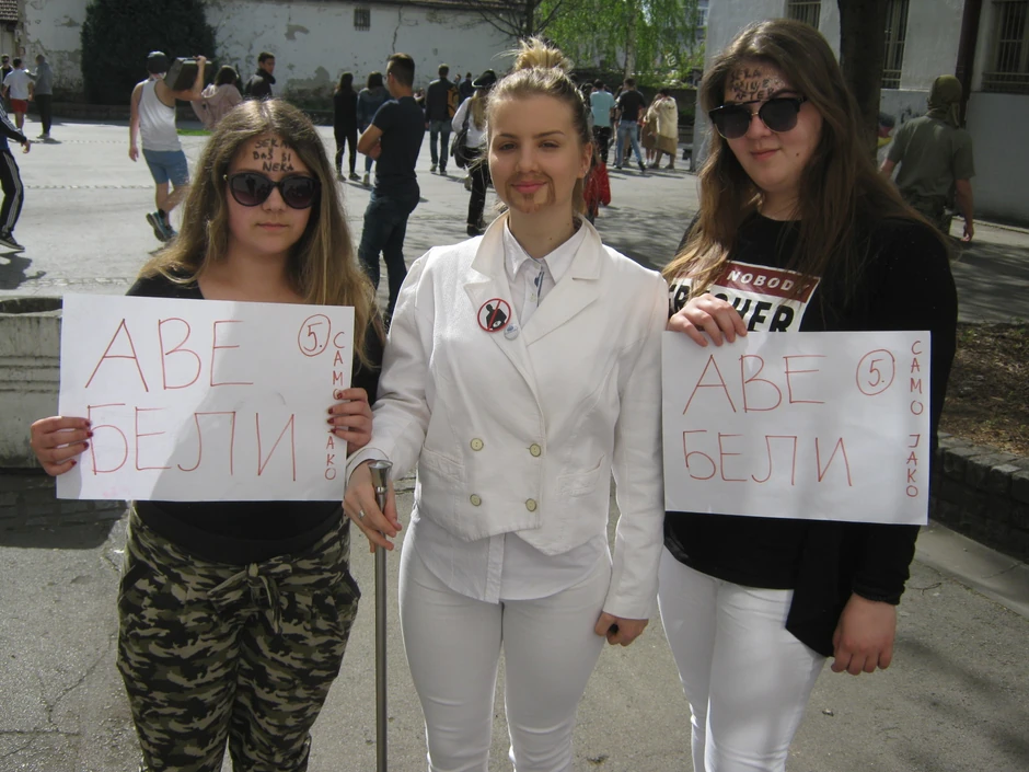 Grupi učenica III-3 inspiracija su bili predsednički izbori pa su se maskirale u Belog Preletačevića i njegove saradnike.