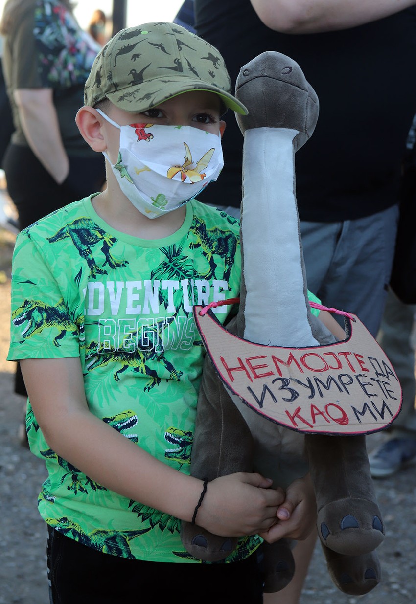 Okupljeni nose transparente sa natpisima "Ne vidim sunce od dima", "Dajte mi vazduh" i "O2 gde si", "Hoću da dišem, neću da mirišem".