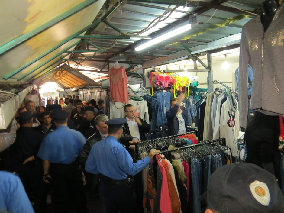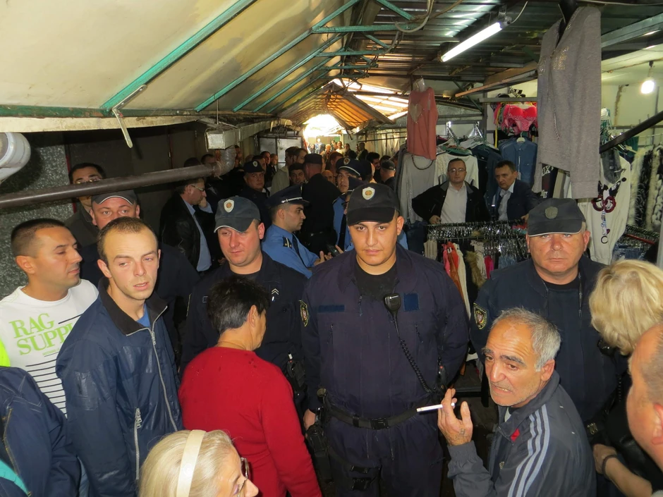 Akcija poreznika počela je u 11.30, ali je posle burne reakcije trgovaca, koji su pokušali da spreče plenidmu robe, pozvana policija. Interventna brigada je napravila prsten oko tezge koja je kontrolisana, dok su sve vreme trgovci vikali i zviždali, tražeći da se racija prekine i da se roba ne oduzima.