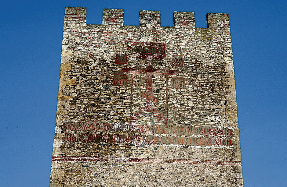Ispod velikog krsta na kuli ispisan je sledeći tekst (u prevodu): “Hristu Bogu blagoverni despot Đurađ gospodar Srblja i pomorja zetskog po naredbi (volji) njegovoj sagradi se ovaj grad u leto 6938. Iznad krsta je ispisan tekst ‘Car slave‘ i znaci ‘Isus Hristos pobeđuje‘.”