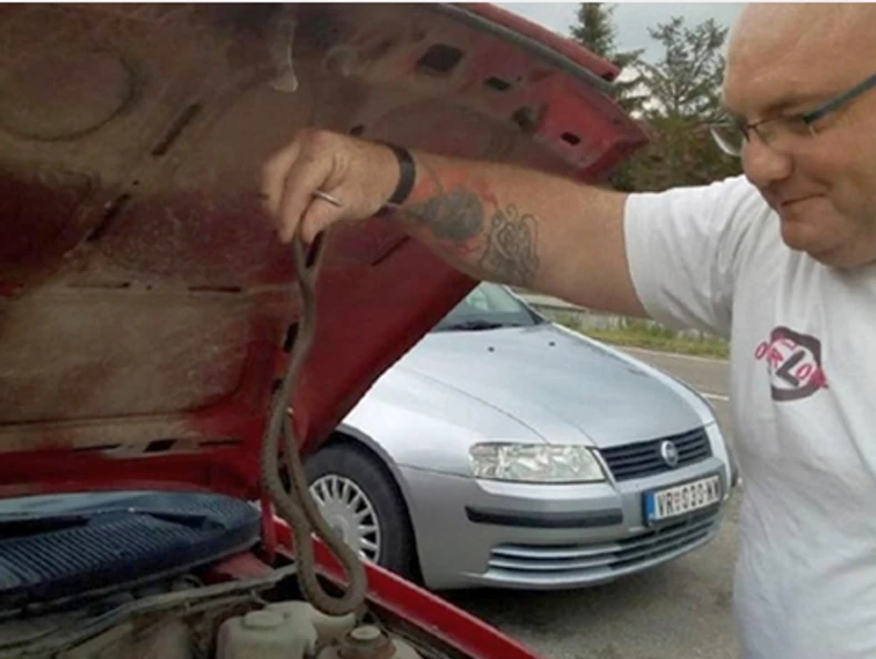 Slobodan Stošić iz sela Kržince, opština Vladičin Han, doživeo je šok kada je u toku vožnje ka Vranju, na šoferšajbni svog automobila ugledao zmiju koja je izvrila iz haube.