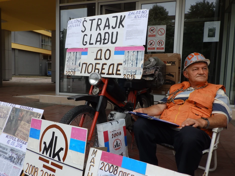 Lazar Pavlović, nekadašnji radnik fabrike Magnohrom vezao se danas lancima ispred zgrade Gradske uprave u Kraljevu i započeo štrajk glađu. Na ovaj potez se odlučio jer je protiv njega podneta prekršajna prijava zbog toga što je bez prethodne najave poveo stotinak bivših radnika u šetnju kroz grad ka Osnovnom sudu.