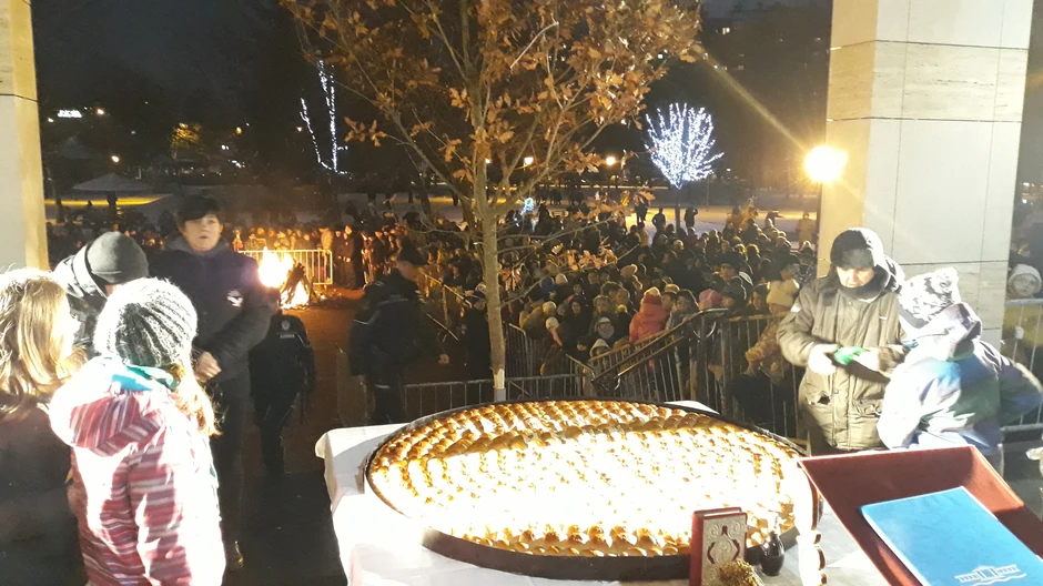 Česnica prečnika dva metra i težine 100 kilograma podeljena je večeras Nišlijama ispred hrama Svetog cara Konstantina i carice Jelene u Parku svetog Save u Nišu.