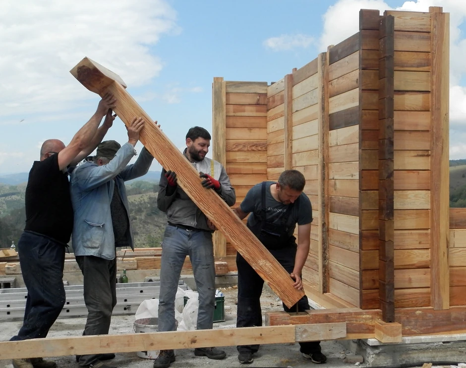 - Borovi su posečeni pre dve godine u šumama iznad Višegrada. Dozemci, prvi trupci bora, najkvalitetniji su i smolom najbogatiji deo stabla. Birali smo ih jer nema boljih za gradnju, brvna su sami luč i traju za večnost. A nema brvana dužih od tri metra i sklapaju se odvajkada isto. Svaki rog ima svoju tavnjaču, da krov izdrži udar planinskih vetrova i snegove - kaže glavni majstor Miroslav Arsenijević iz Čačka.