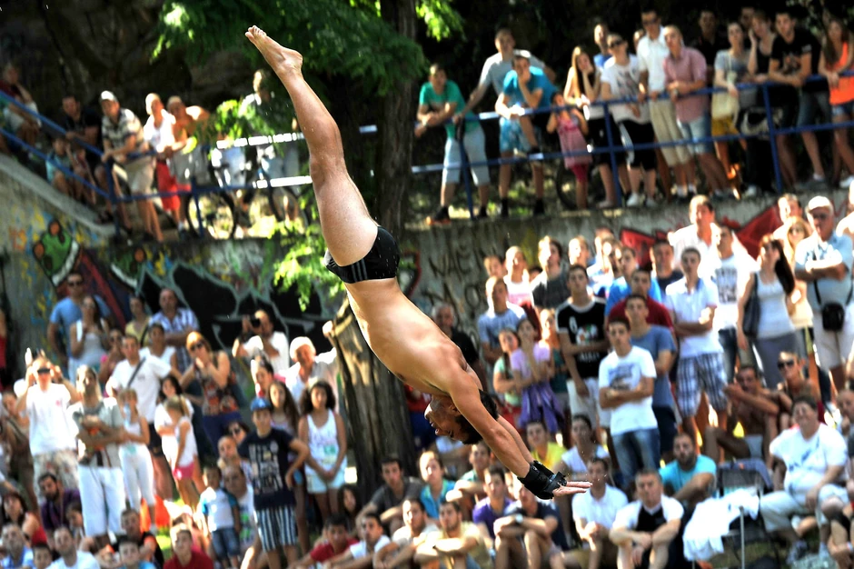 Ivica Domanović pobednik je 23. takmičenja u skokovima u vodu sa starog železničkog mosta u Užicu.