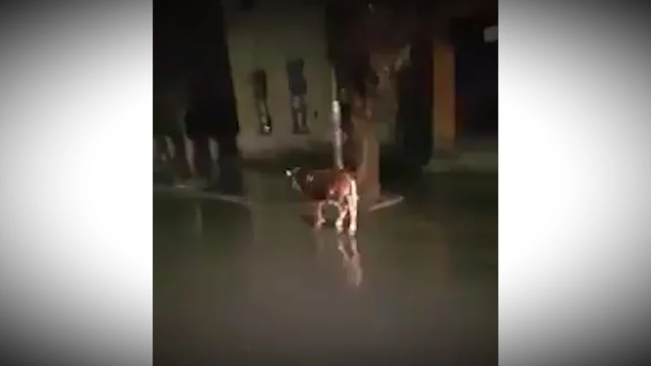 Naočigled brojnih očevidaca, od kojih je jedan i usnimio ovu nesvakidašnju poteru, vidi se tele kako juri jednom od ulica u Petrovcu na Mlavi, dok ga prati policijski auto.