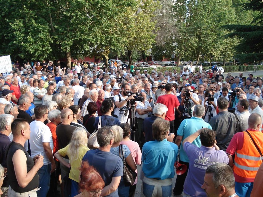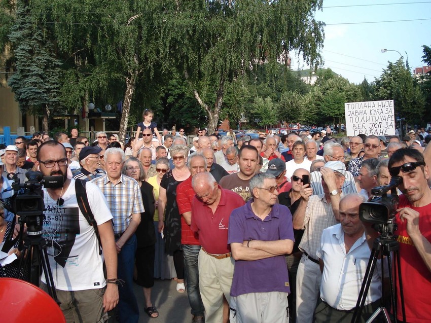 - Neodrživa je politika da država i poslodavci, sa jedne strane, smanjuju zarade i penzije, a da država, sa druge strane, vodi politiku povećanja cena usluga javnih preduzeća. Politika štednje podrazumeva da pad zarada i penzija mora nužno da prati i pad kontrolisanih cena, naročito onih koje se formiraju na monopolski ili kartelski način, rekao je predsednik Udrženja Saša Kostić ispred kapije Toplane.