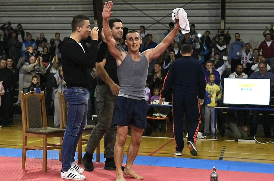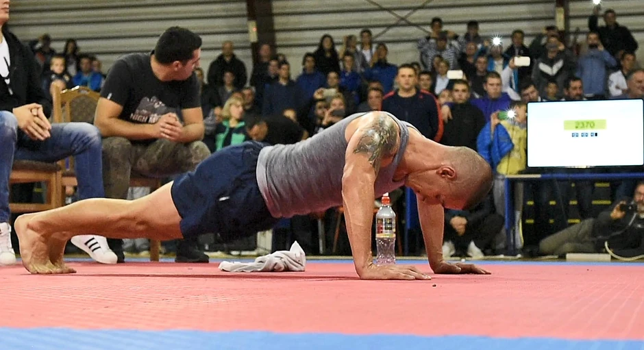 Na poslednjoj proveri, pre sedam dana, Srđan Ristić je uradio 2.320 sklekova, što je dovoljno da se upiše u knjigu slavnih rekordera.