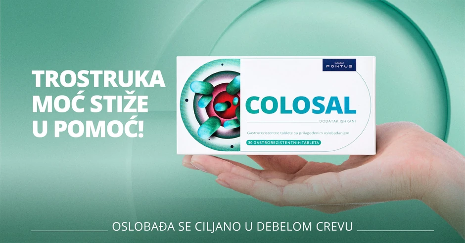 Ali - ne kaže se bez razloga da trostruka moć stiže u pomoć! Buterna kiselina, fruktooligosaharidi i bifidobakterije, ujedinjene u dodatku ishrani pod nazivom Colosal, blagotvorno deluju na umorna i iscrpljena creva.