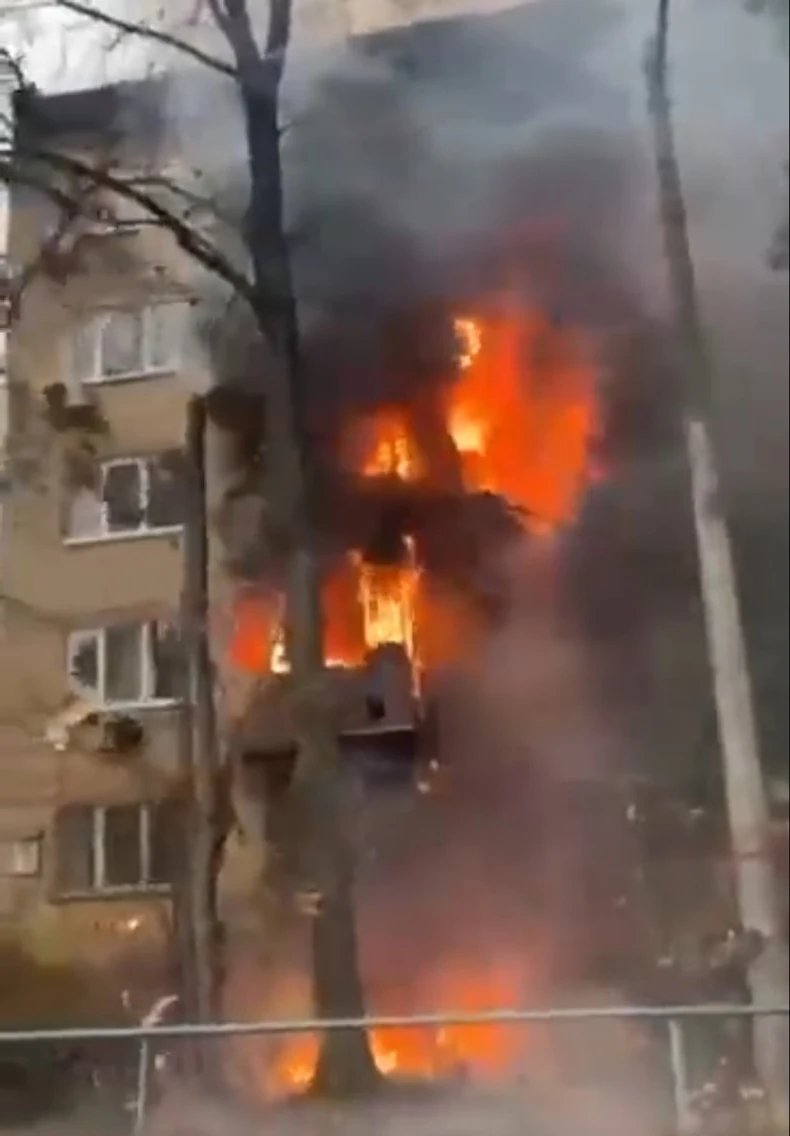 Jedno telo je izvučeno iz stambene zgrade koja je pogođena i zapaljena u centru Kijeva, a visoki predsednički zvaničnik rekao je da je situacija sa strujom "kritična" nakon teške štete na energetskoj infrastrukturi.