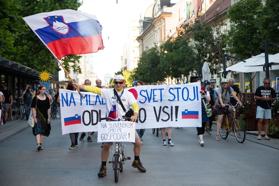 Demonstranti od kojih su mnogi bili na biciklima prošli su centrom Ljubljane, uzvikujući slogane protiv vlade, a otišli su i do ministarstava zdravlja i unutrašnjih poslova.