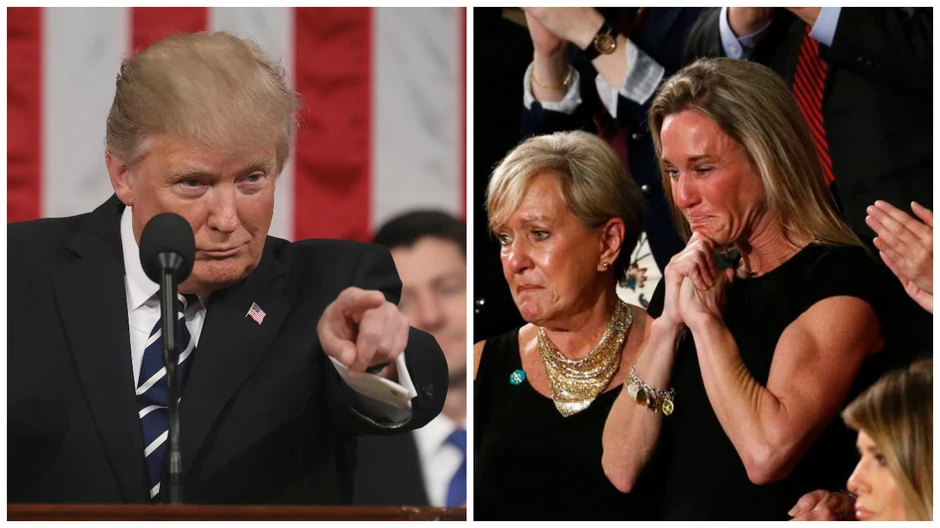 Među njegovim gostima bila je i Kerin Ovens, udovica Rajana Ovensa, pripadnika specijalne vojne jedinice mornaričkih "foka", koji je poginuo u misiji u Jemenu koju je naredio Tramp, a koja je prerasla u potpuni fijasko. Trenutak u kom joj se Tramp obratio obeležio je celo obraćanje.