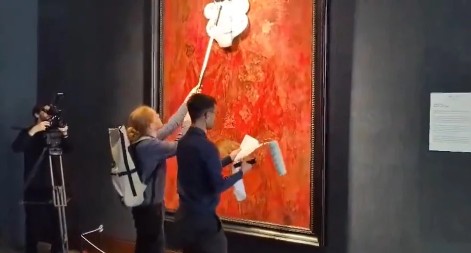Aktivisti za zaštitu životinja vandalizovali su novi portret kralja Čarlsa u galeriji Filip Mold u Londonu.