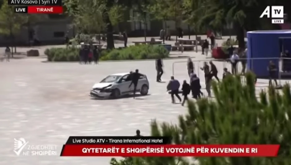 Jedan čovek uskočio je kroz otvoren prozor automobila u pokretu, sa nogama napred, kako bi zaustavio vozača koji se brzo okretao na trgu Skenderbeg u Tirani.
