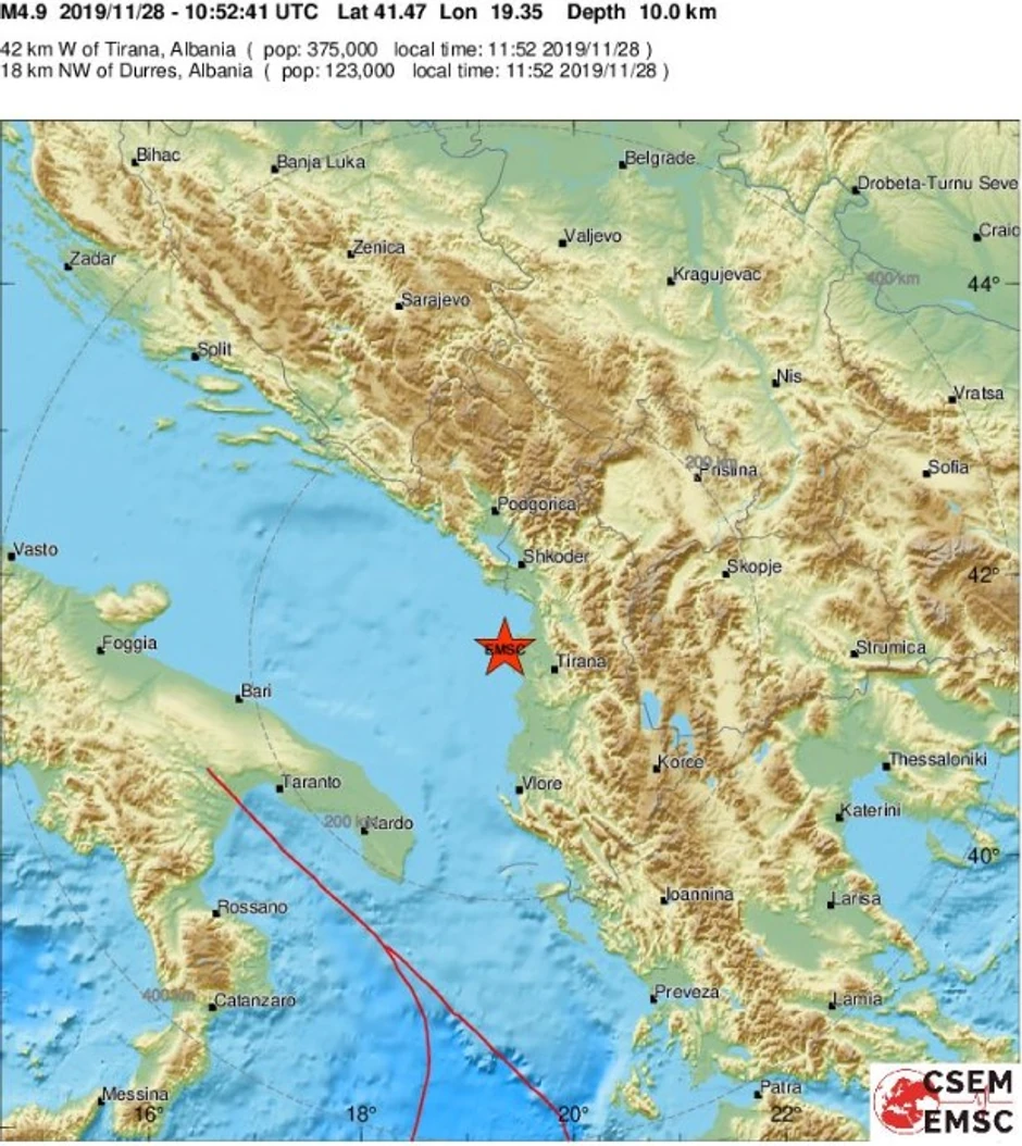 Prema tim informacija, magnituda tog potresa je 4,9 po Rihteru sa epicentrom u Jadranskom moru, 18 kilometara severozapadno od Drača.
