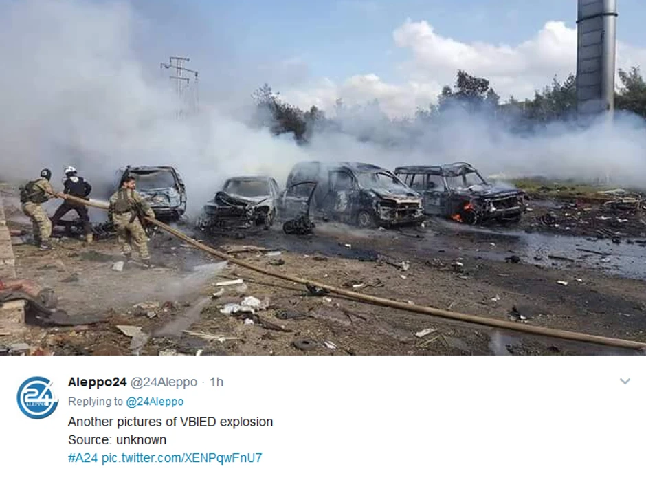 Jaka eksplozija dogodila su u konvoju koji čeka da preuzme ljude evakuisane iz šiitskih sela i preveze ih u predgrađe Alepa, javlja Sputnjik. Isti izvor navodi da je ubijeno 70 ljudi do eksplozije došlo kada se bombaš samoubica razneo ispred autobusa. Nekoliko drugih medija tvrdi da je do eksplozije došlo kada je eskplodirao automobil-bomba.