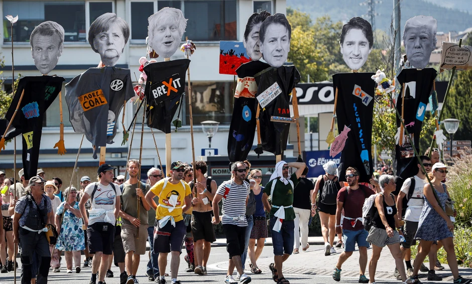 "Ne G7, želimo drugi svet" pisalo je na jednom transparentu, a na drugom "Šefovi država, Amazon gori, učinite nešto".