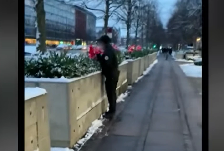 Danska televizija TV2 objavila je snimak na kojem se vidi kako obezbeđenje uklanja zastavice iz cveća ispred američke ambasade.