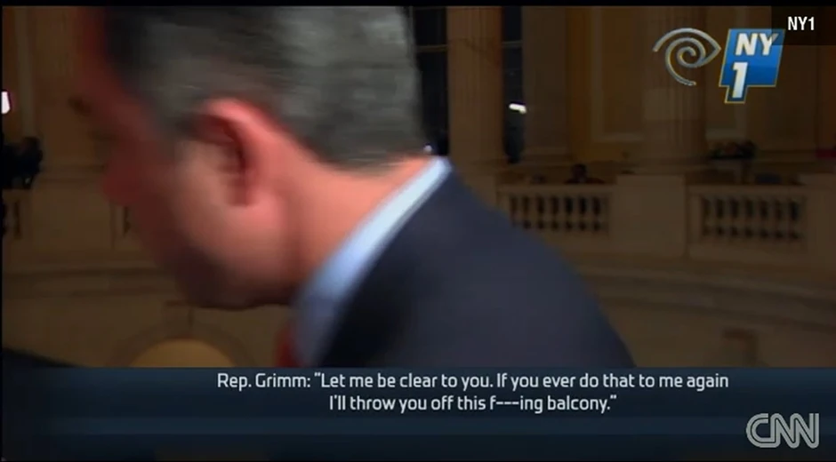Član predstavničkog doma Kongresa SAD Majkl Grim (republikanac iz Njujorka) u svom je intervjuu u utorak uveče, nakon Obaminog govora o stanju nacije, odbio da odgovori na pitanja o optužbama vezanim za nezakonitosti u finansiranju svoje kampanje, a zatim je i zapretio novinaru, unoseći mu se u lice.