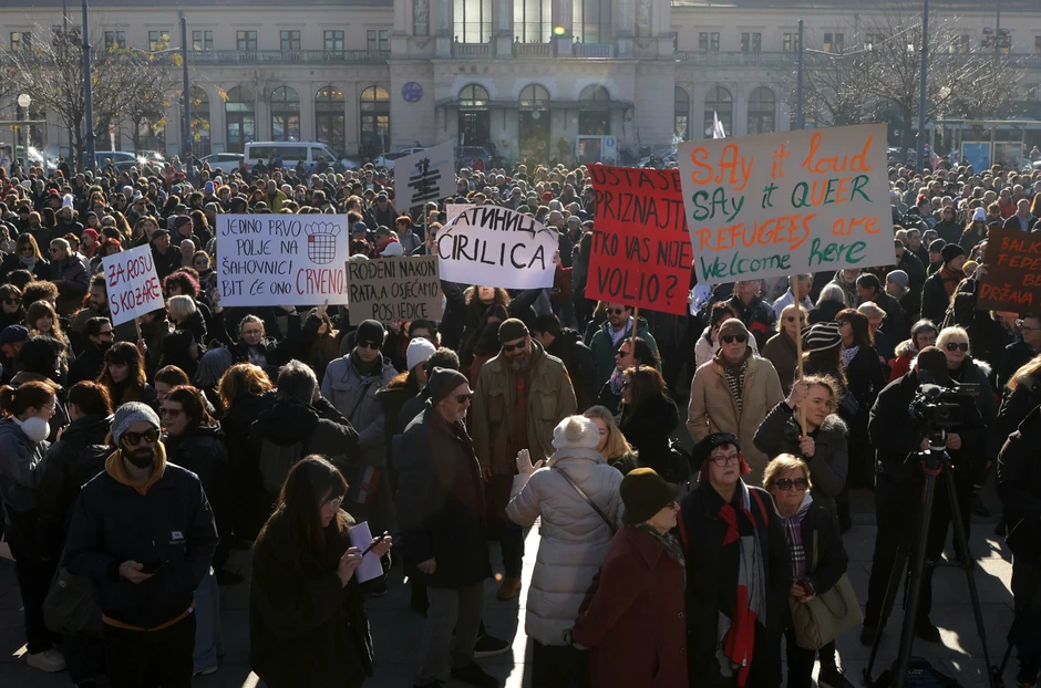 Učesnici antifašističkih marševa su pokazivali poruke protiv fašizma i ustaških režima