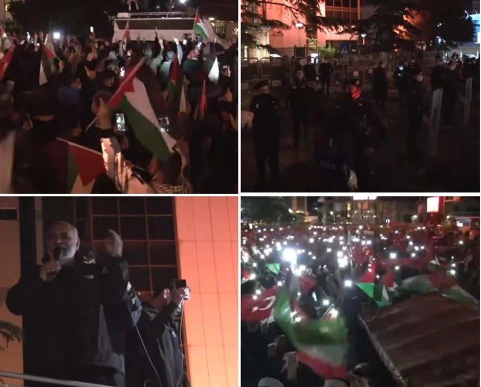 Hilajde ljudi okupile su se večeras ispred ambasade Izraela u Ankari i konzulata te zemlje u Istambulu kako bi protestovale zbog izraelskih poteza protiv Palestinaca, uprkos merama karantina uvedenim radi suzbijanja korona virusa.