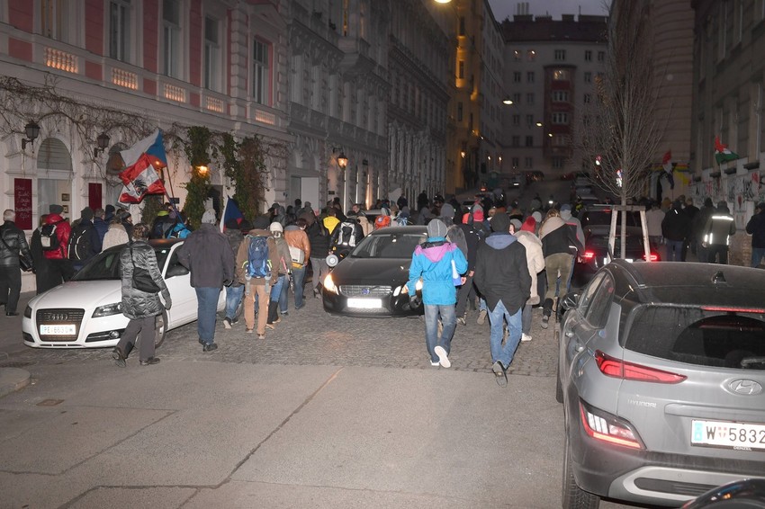 Antivakserski pokret Ljudi, slobode, osnovna prava (MFG) organizovao je protest na trgu Ssvarcenbergplac, i mimo dogovora krenuli su u šetnju centrom grada, probivši policijske barikade.