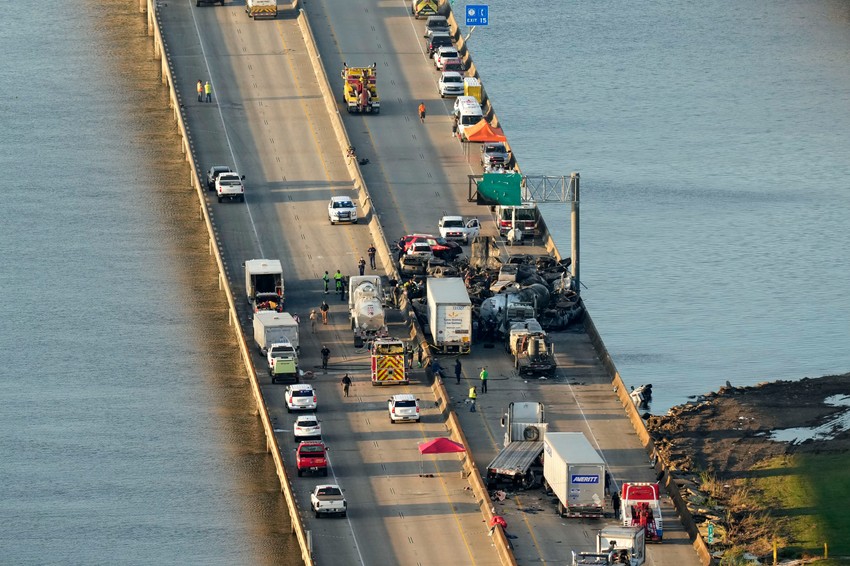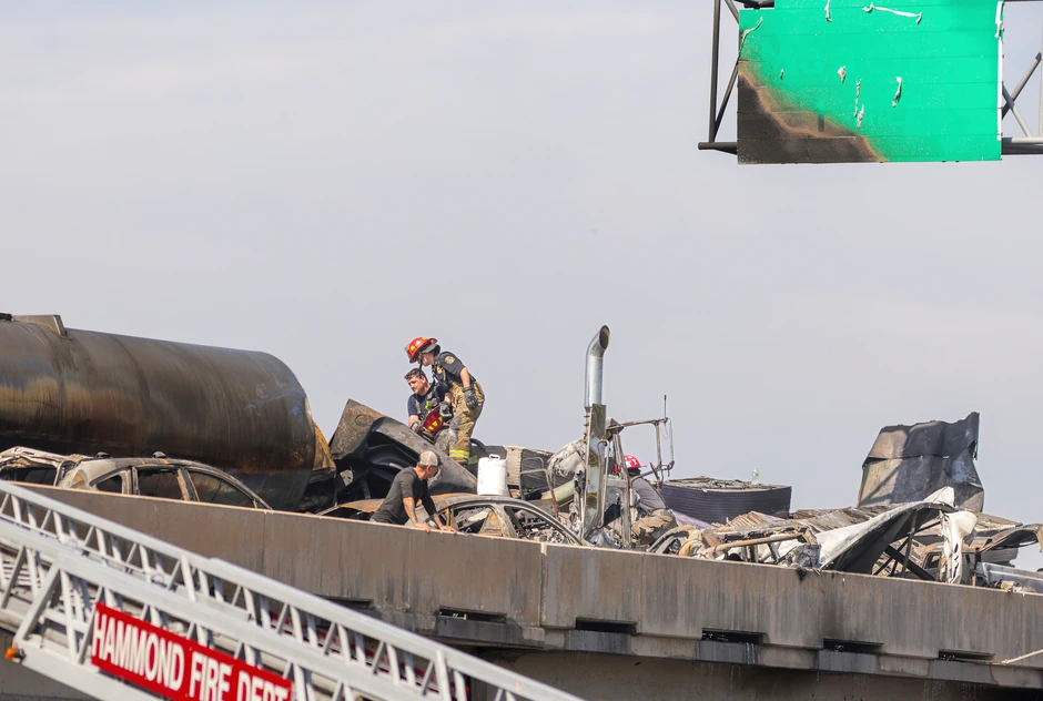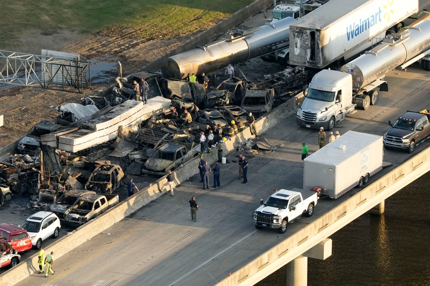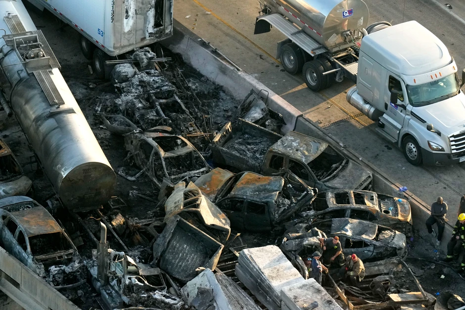 Apokaliptični video snimci prikazuju olupine oštećenih i spaljenih vozila na međudržavnom putu 55 u blizini Nju Orleansa.
