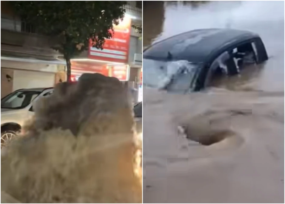 U centralnoj ulici u Kalitei, nakon nekoliko minuta jake kiše, stvorila se fontana nasred puta.