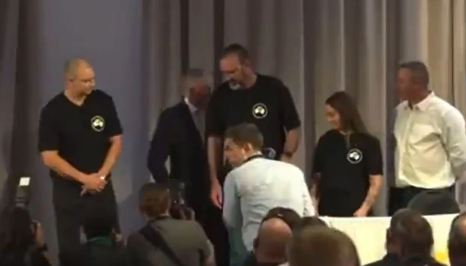 Učesnici događaja pomogli su Albanezeu da ustane, a on je mahnuo prisutnima poručujući da je dobro, preneo je "Skaj njuz".