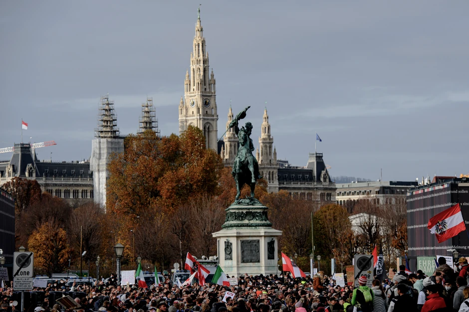 Hiljade Austrijanaca marširalo je centrom Beča u subotu, besni zbog odluke vlade da nametne novi lokdaun i uvede obaveznu vakcinaciju od februara iduće godine. Bečka policija je procenila da je na uglavnom mirnim protestima učestvovalo oko 40.000 ljudi, uključujući i porodice i desničarske grupe. Međutim, nakon mirnog marširanja popodne uveče su izbili sukobi između grupa demonstranata i policije.