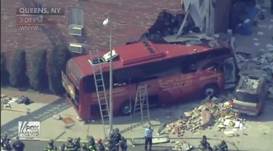 Najmanje sedam osoba je danas povređeno kada je autobus pun turista udario u jednu zgradu u Kvinsu u Njujorku, javili su američki mediji.