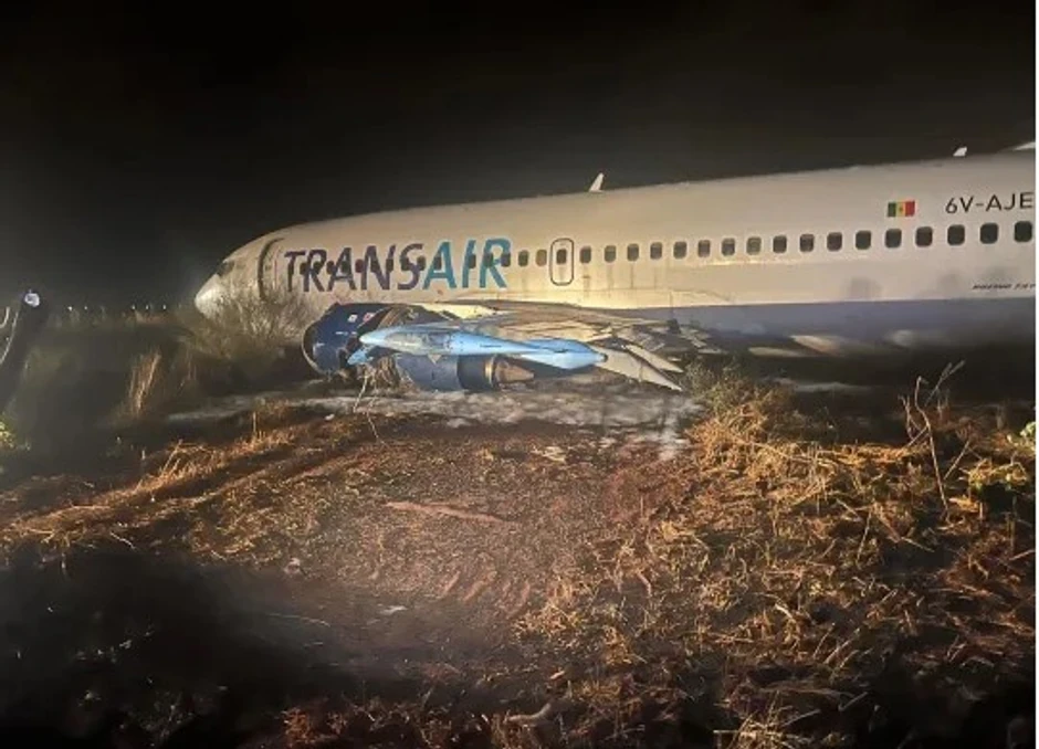 Snimak pokazuje posledice pada aviona Transair prekrivenim penom za suzbijanje požara na aerodromu Dakar u Senegalu.