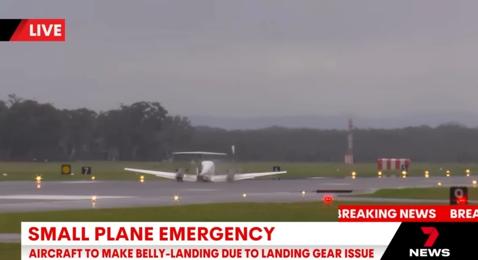 Dvoje putnika i pilot nepovređeni su nakon prinudnog sletanja na australijski Aerodrom Njukasl bez stajnog trapa, usled mehaničkog kvara.