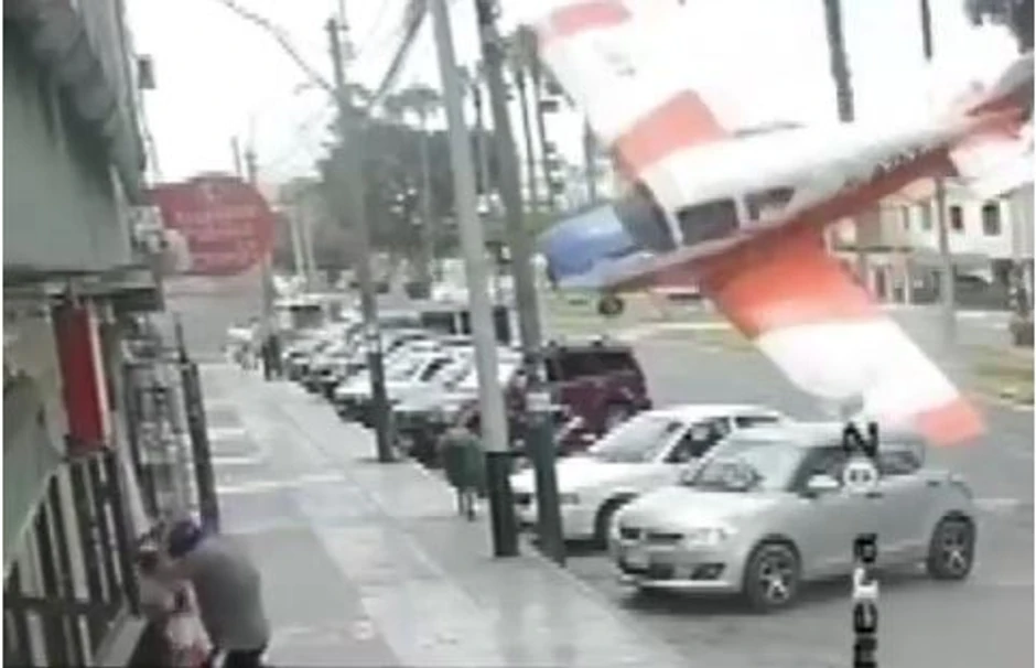 Na snimku, objavljenom na internetu, vidi se kako se dok ljudi šetaju mali avion nekontrolisano okreće, a zatim ruši na ulicu, padajući kroz debelu mrežu strujnih kablova kidajući ih.