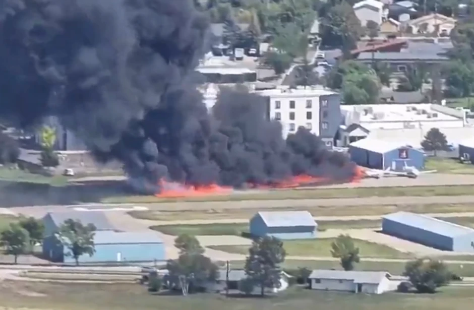 Mali avion koji je sleteo na aerodrom u Montani sudario se sa parkiranim avionom, izazvavši požar, ali niko nije teško povređen, saopštile su danas vlasti.