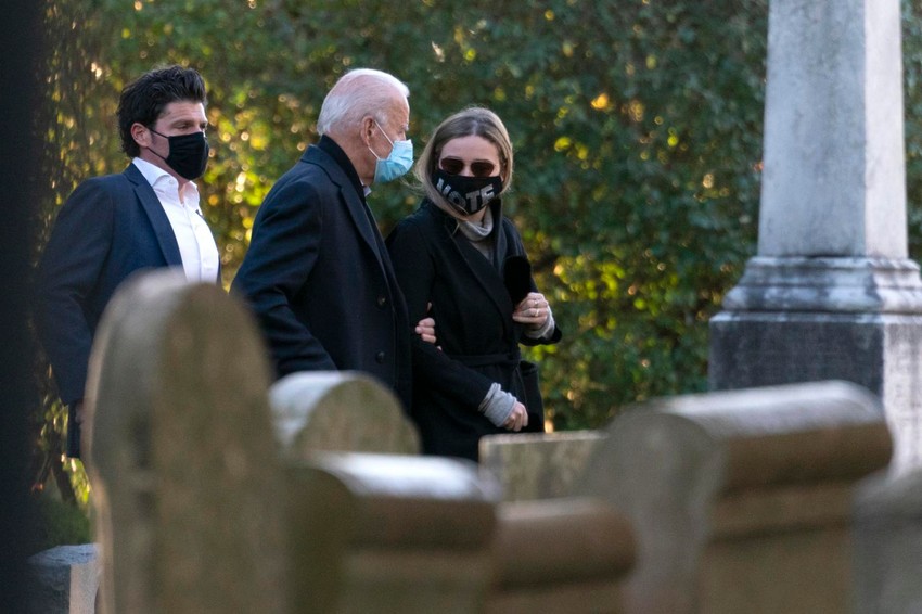 Demokratski kandidat uslikan je jutros kako sa suprugom Džil napušta crkvu u Delaveru gde je posetio grob svog sina Boa koji je preminuo 2015.