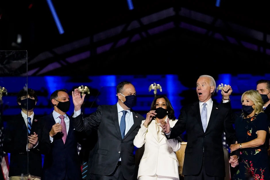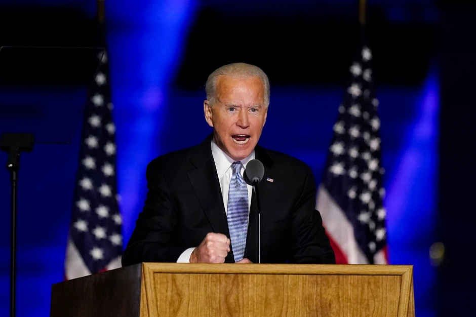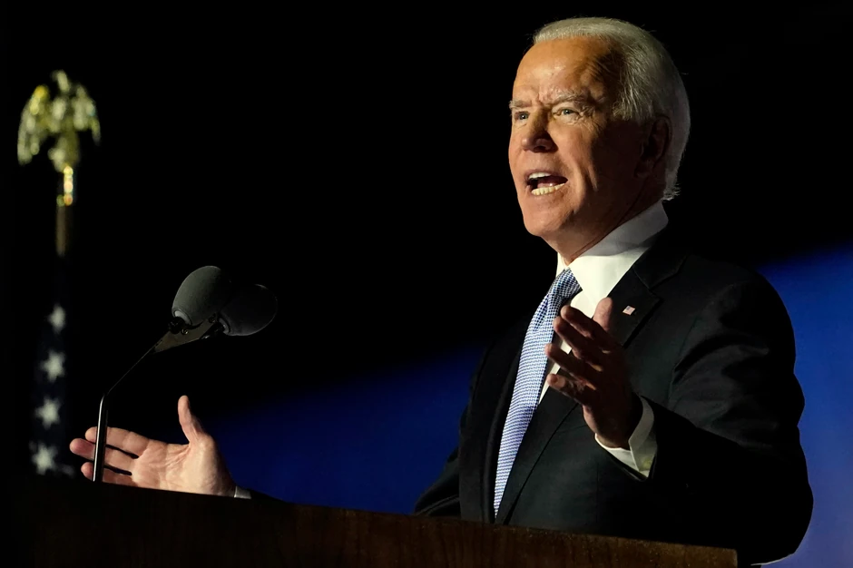 U svom pobedničkom govoru istakao je dan neće biti predsednik koji razdvaja, već ujedinjuje, koji ne vidi plave i crvene države već samo Sjedinjene Države (tokom trajanja izbornog procesa plavom bojom bile su označene one države u kojoj je Bajden pobedio, a crvenom Tramp).