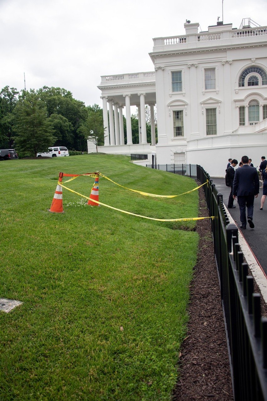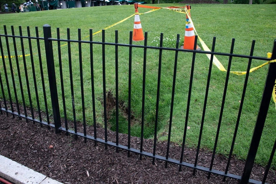 Rupa koja se pojavila na travnjaku Bele kuće uzrokuje glavobolju osoblju. Vrtača je prvi put primećena prošle nedelje na severnom travnjaku, nekoliko metara od prostorije za medijske konferencije Bele kuće kao i kancelarije zamenika sekretara za štampu Hogana Gidlija. Tokom poslednjih nekoliko dana vrtača, koju je osoblje okružilo trakom upozorenja, proširila se a pored nje pojavila se i druga rupa.