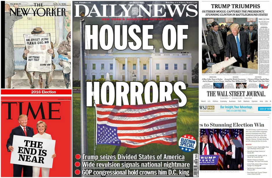 "Njujork Tajms" je napisao "Tramp je trijumfovao, autsajderski mogul uhvatio predsedničko mesto".