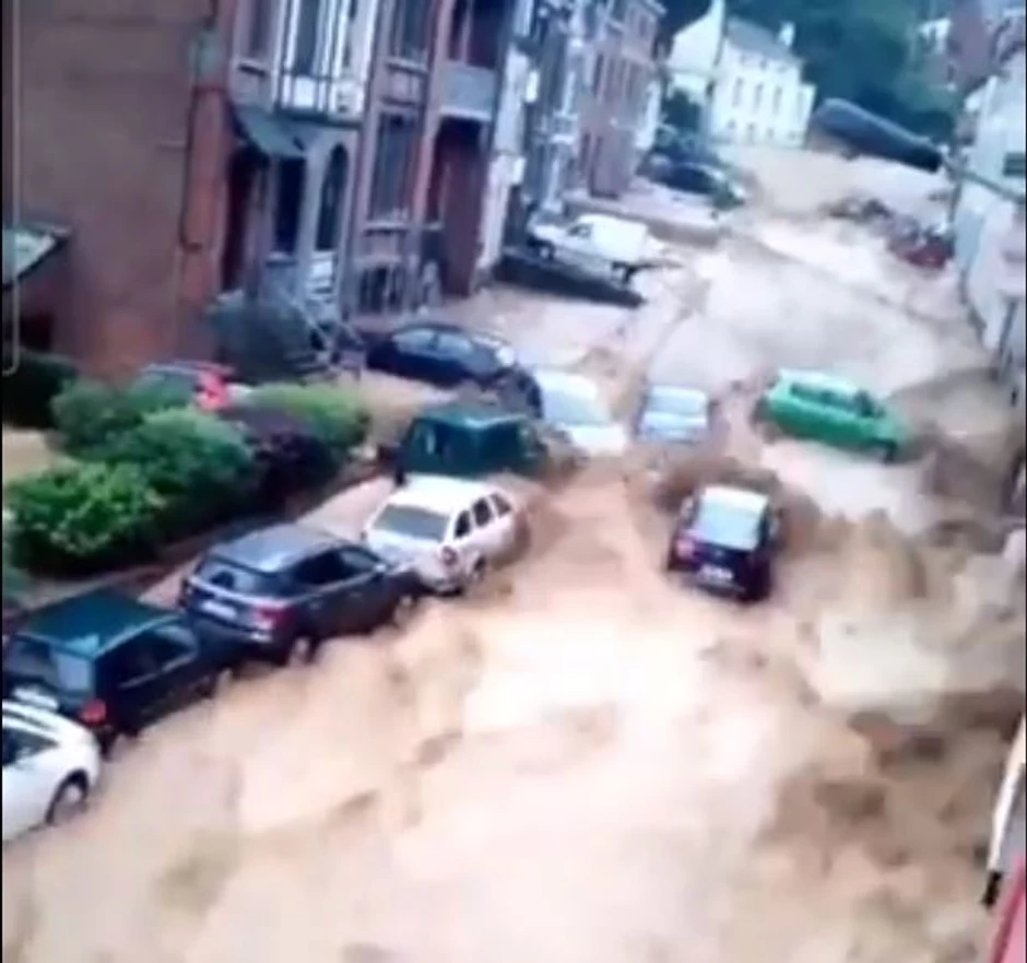 Obilne kiše izazvale su značajnu štetu u Dinanu, gde je bujica nosila gomile kola kroz grad.