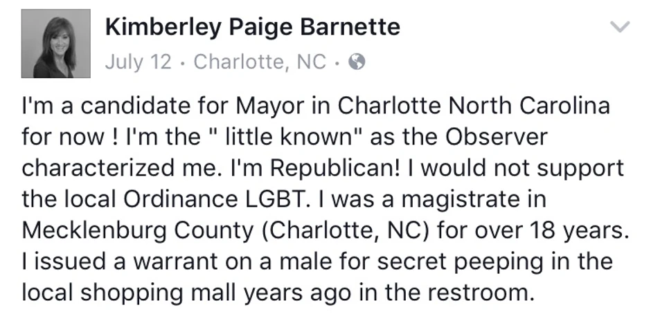 Kimberli Pejdž Barnet (52), kandidatkinja za gradonačelnika Šarlota, Severna Karolina, uključila je činjenicu da je belkinja u svoje kvalifikacije, piše “Vašington igzemener”.