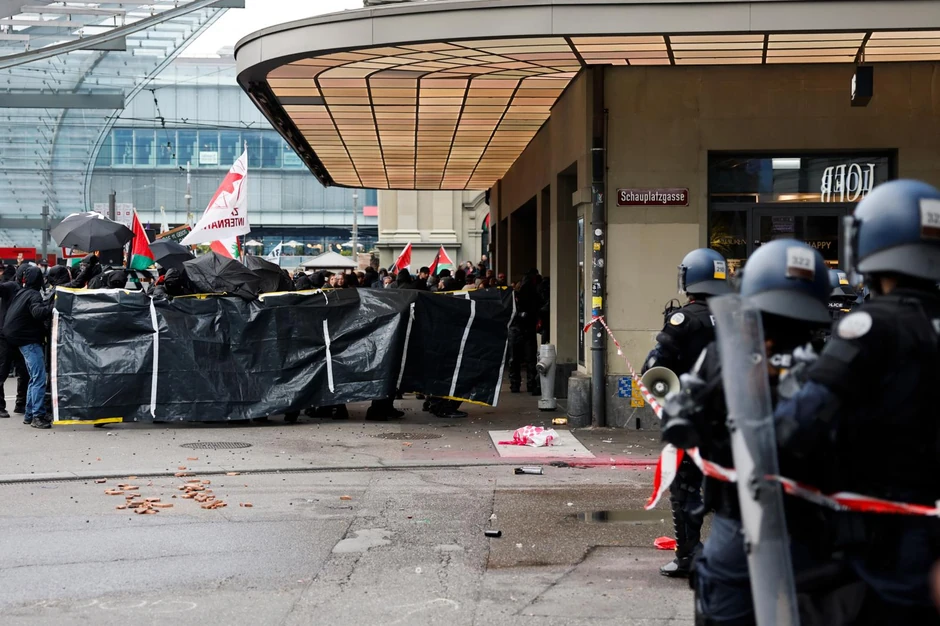 Demonstranti su skandirali "Slobodna Palestina" i kritikovali "neaktivnost" švajcarske vlade. Na jednom od transparenata pisalo je "Neutralnost umrljana krvlju".