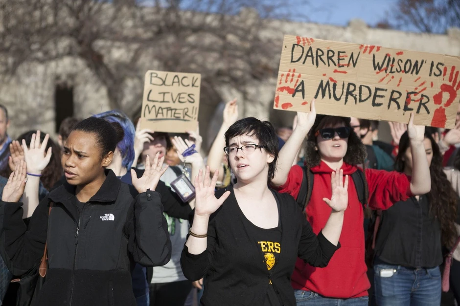 Širom SAD održani su protesti u kojima su okupljeni simbolično držali podignute ruke u vis, u znak poštovanja prema Majklu Braunu, tinejdžeru kojeg je u avgustu ubio policajac iz Fergusona u Misuriju.