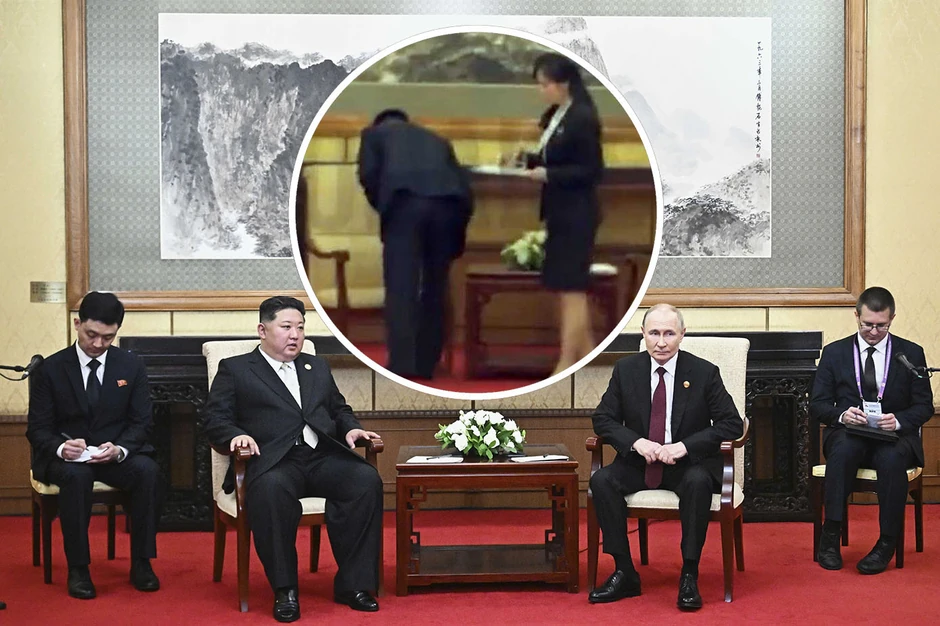 Na snimku se vidi kako severnokorejski predstavnici brišu stolicu na kojoj je sedeo Kim Džong Un i uklanjaju čašu iz koje je pio.