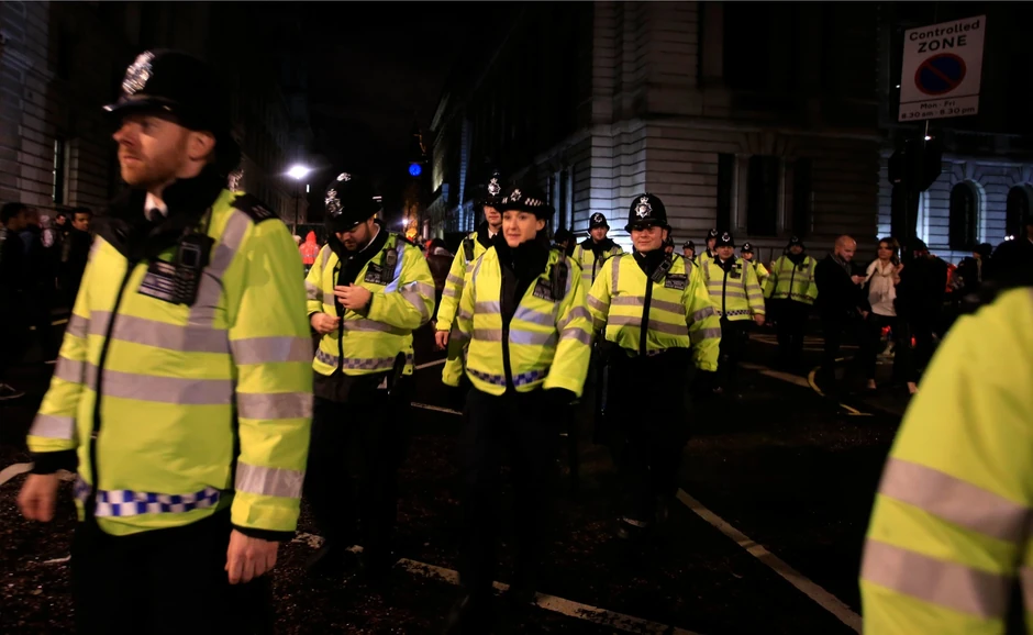 Okupljeni na poziv raznih sindikata i organizacija, demonstranti, neki iz Londona, na trgu ispred Gradske većnice drugog po veličini grada Engleske, uzvikivali su "Napolje konzervativci!", držeći i transparente s porukama protiv rata i rasizma.
