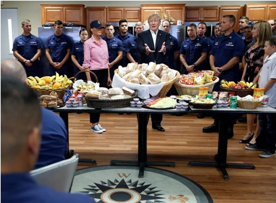 Tramp je pohvalio Obalsku stražu, naročito ističući broj života spasenih za vreme uragana na Floridi i u Teksasu. Međutim, ono što je privuklo pažnju ljudi jeste način na koji je to rekao, rekavši da je Obalska straža "podigla svoj brend na viši nivo"