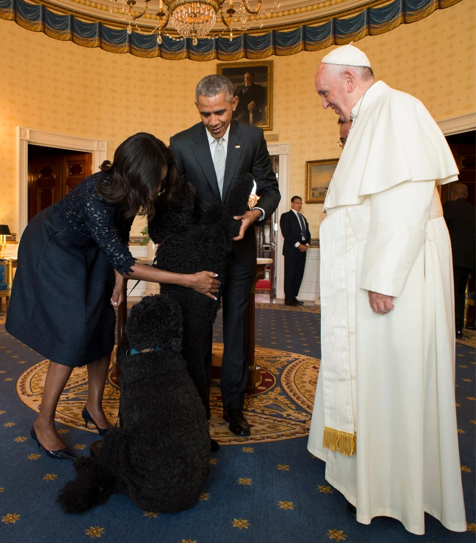 Obama i njegova porodica imaju dva portugalska vodena psa, Boa od 2009, a ženka Sani, koju nazivaju Boovom "mlađom sestrom", sa njima je od 2013. godine.