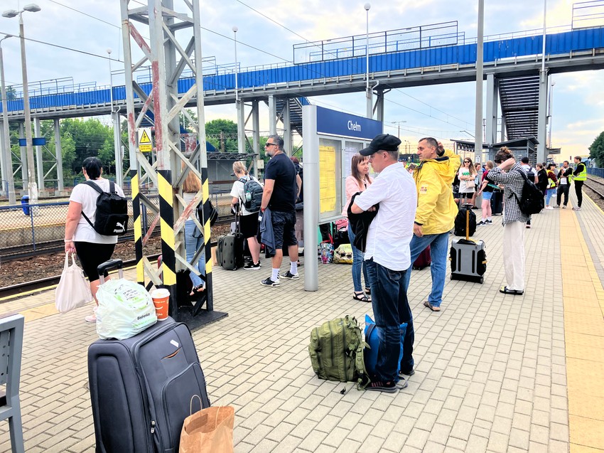 Put do Kijeva ima dve etapa i nije nimalo lak. Od prestonice Poljske prvo se ide trosatnim putovanjem brzim vozom do Helma, grada blizu granice sa Ukrajinom, a onda više od 12 sati putovanja do Kijeva regularnim vozom. Više od polovine putnika su Ukrajinci, koji idu u posetu svojim kućama, porodicama, familiji, prijateljima.
