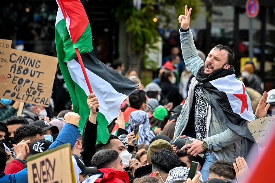 Zbog eskalirajućeg sukoba između Izraela i Hamasa, demonstranti su pozvali na "slobodu za Palestinu" i podsetili na "Nakbu" (katastrofa). Palestinci 15. maja obeležavaju proterivanje i bekstvo stotina hiljada tokom uspostavljanja Države Izrael 1948. godine.